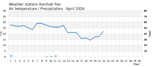 Daily Temperature-Precipitation diagram: For the following weather stations is this diagram type for Apr 2026 not available, because the stations were not yet installed that month.
